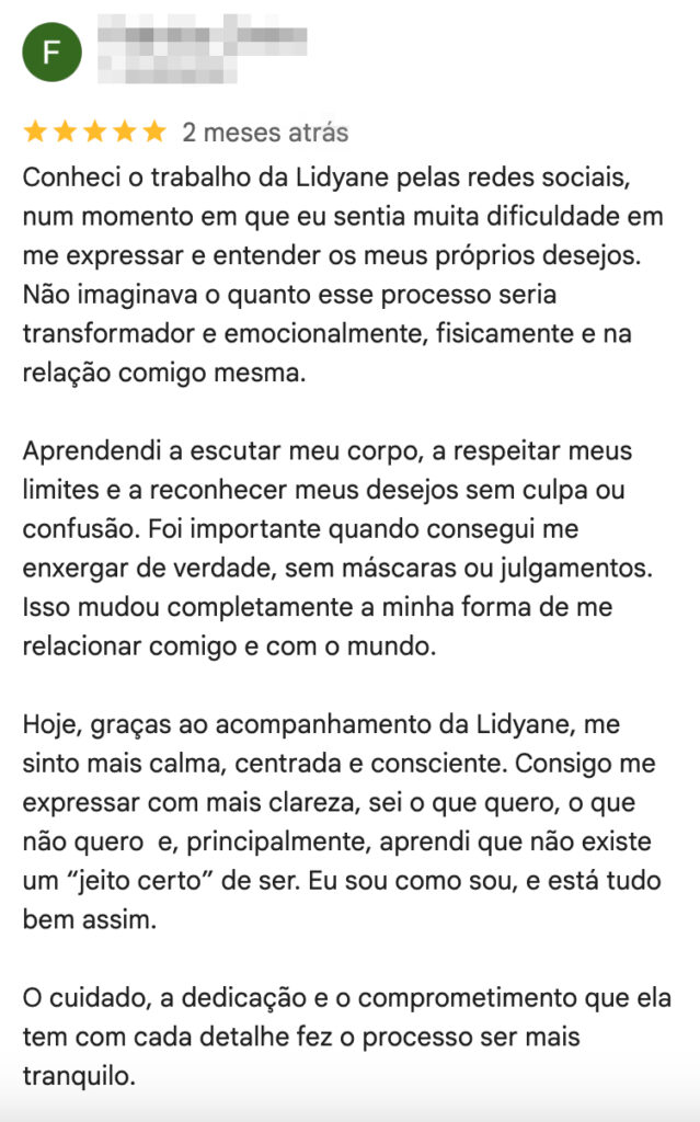 Ao longo da minha trajetória, tive o privilégio de acompanhar mais de 1.000 pessoas, criando espaços seguros para explorar a sexualidade, ressignificar o prazer e fortalecer a intimidade. Sempre respeitando a singularidade de cada corpo, desejo e história.